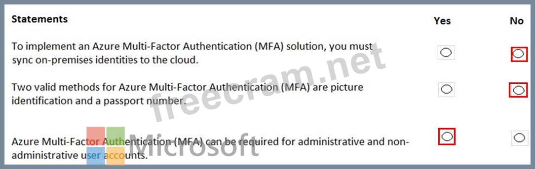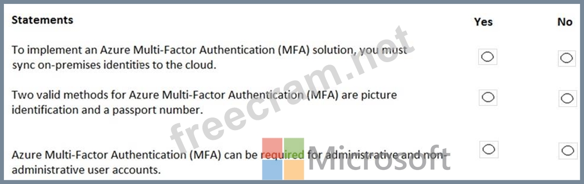 For each of the following statements, select Yes if the statement is true. Otherwise, select No.