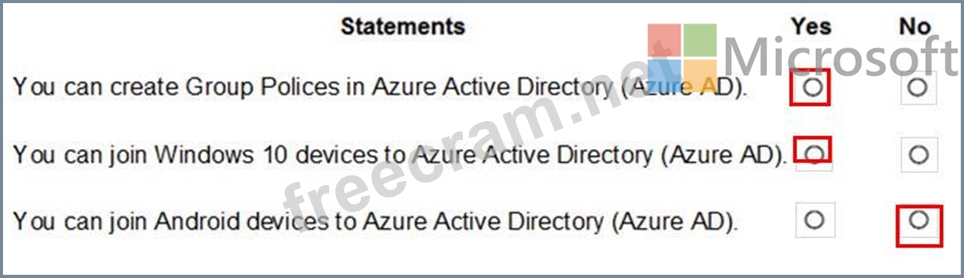 For each of the following statements, select Yes if the statement is true. Otherwise, select No.