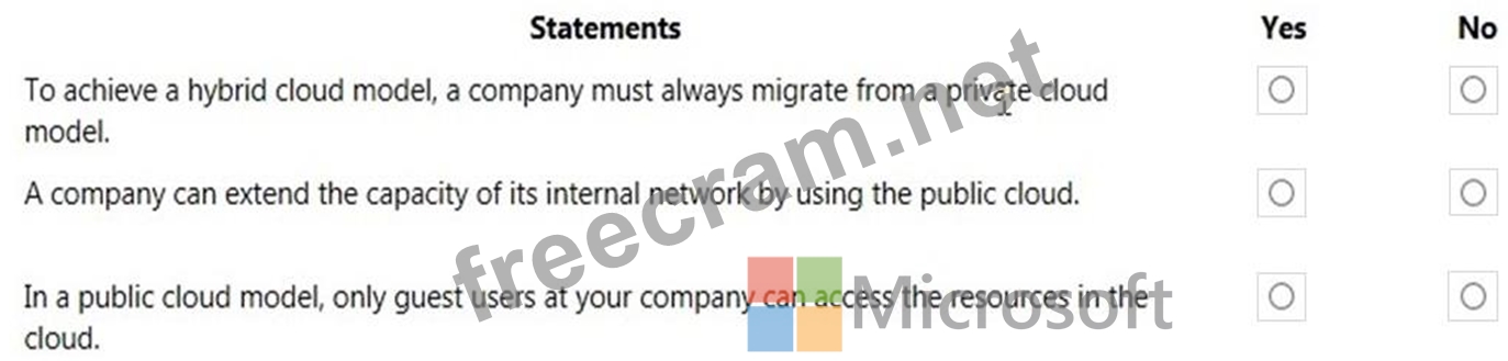 For each of the following statements, select Yes if the statement is true. Otherwise, select No.