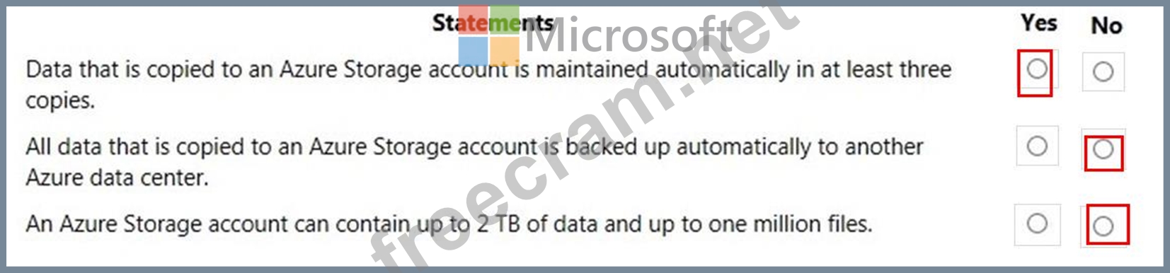 Question 71: How many copies of data are maintained by an Azure Storage a...
