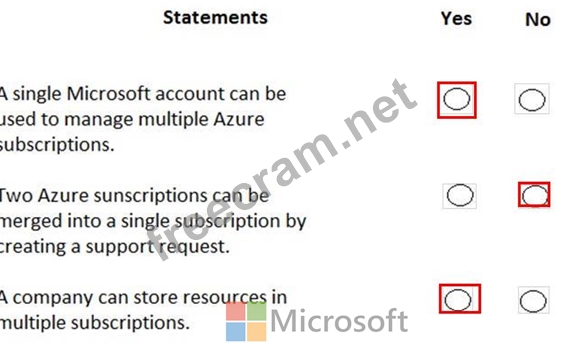 For each of the following statements, select Yes if the statement is true. Otherwise, select No.