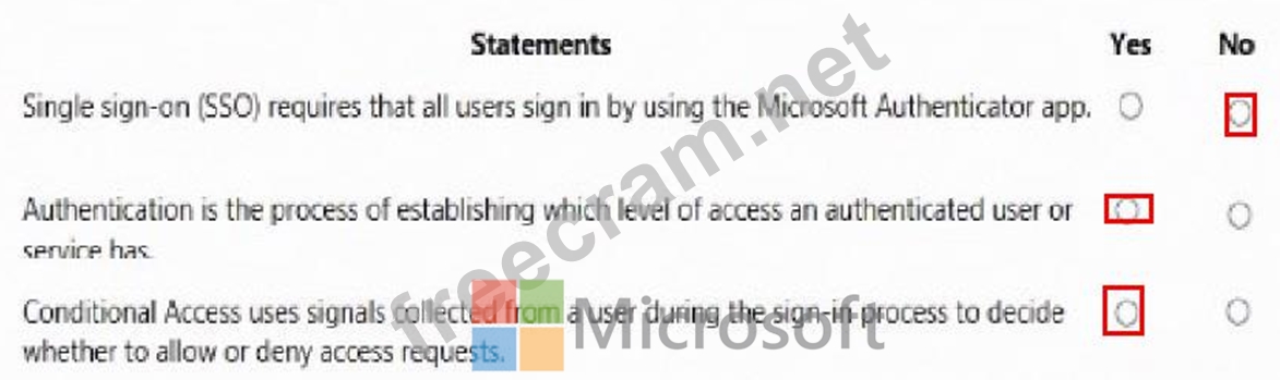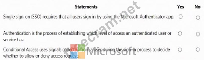 For each of the following statements, select Yes if the statement is true, Otherwise, select No.