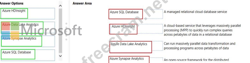 Instructions: To answer, drag the appropriate Azure service from the column on the left to its description on the right. Each service may be used once, more than once, or not at all NOTE: Each correct match is worth one point.