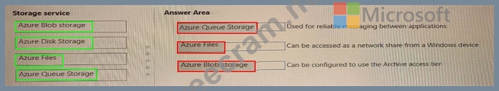Question 123: Match the Azure storage services to the appropriate descript...