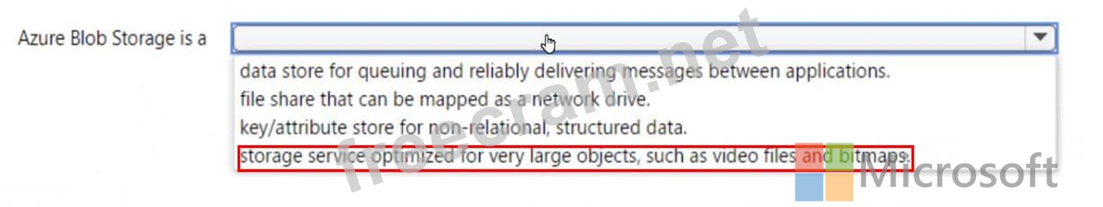 Question 123: Match the Azure storage services to the appropriate descript...