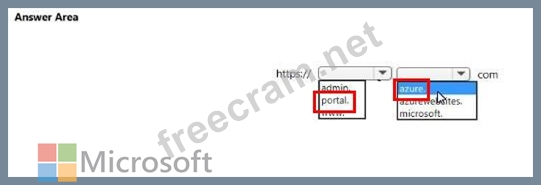 To which URL should you connect to manage all the Azure resources? To answer, select the appropriate options in the answer area.