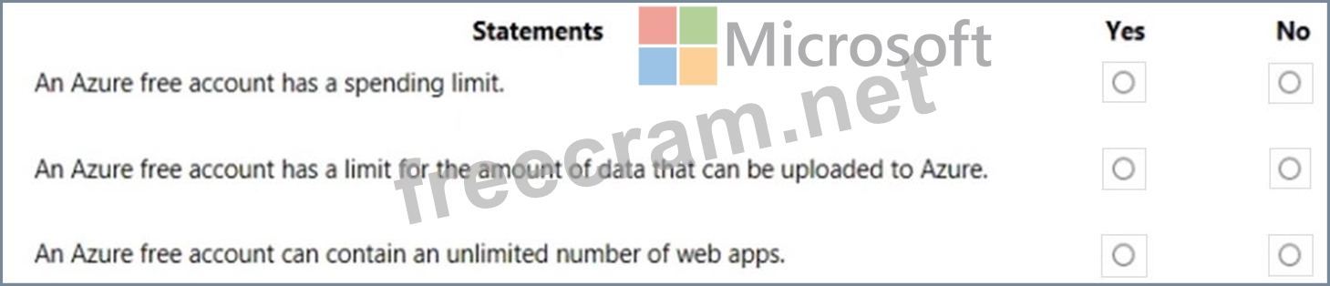For each of the following statements, select Yes if the statement is true. Otherwise, select No.