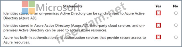 For each of the following statements, select Yes if the statement is true. Otherwise, select No.