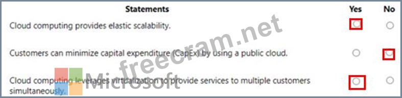 For each of the following statements, select Yes if the statement is true. Otherwise, select No.