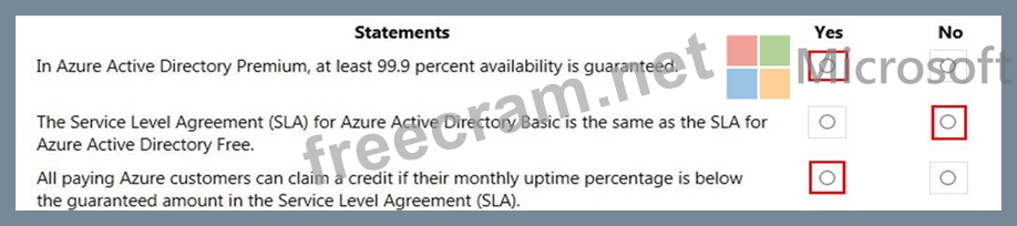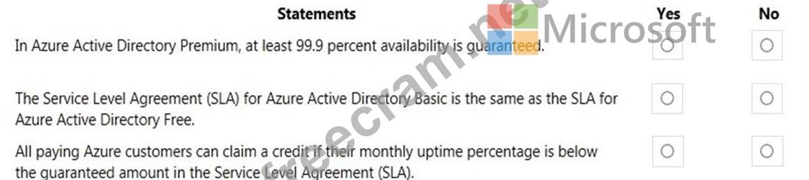 For each of the following statements, select Yes if the statement is true. Otherwise, select No.