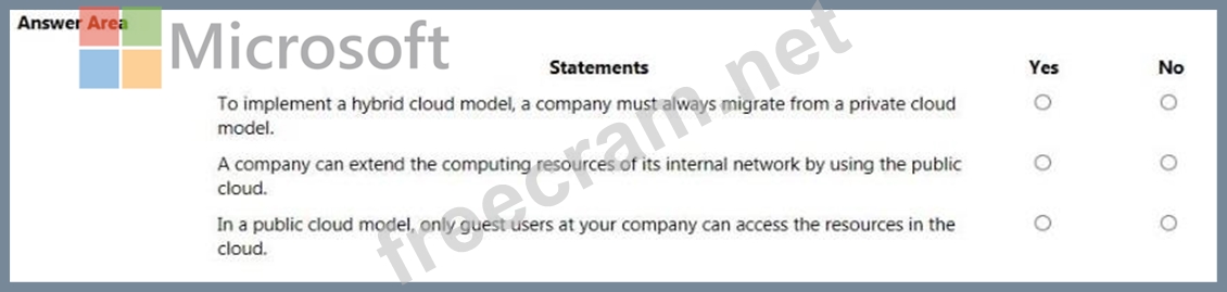 For each of the following statements, select Yes if the statement is true. Otherwise, select No. NOTE: Each correct selection is worth one point.