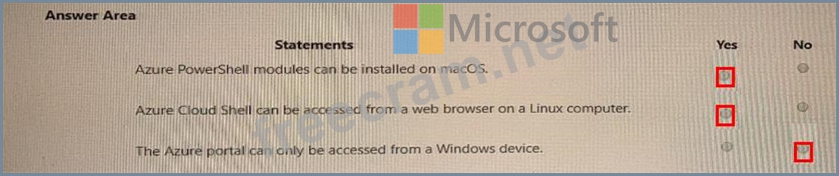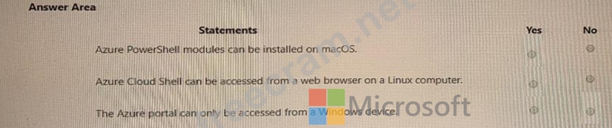 For each of the following statements, select Yes if the statement is true. Otherwise, select No.