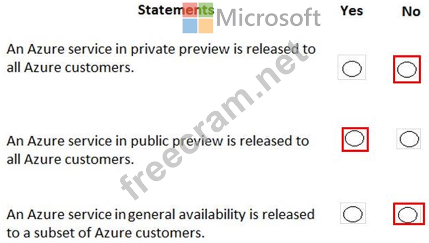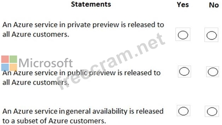 For each of the following statements, select Yes if the statement is true. Otherwise, select No.