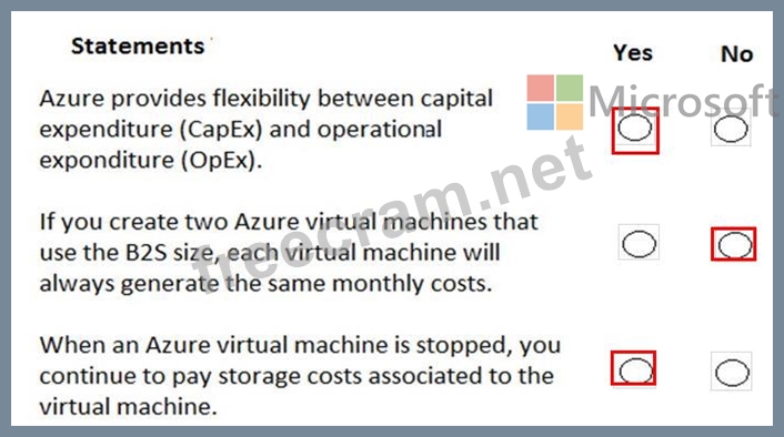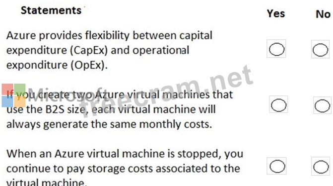 For each of the following statements, select Yes if the statement is true. Otherwise, select No.