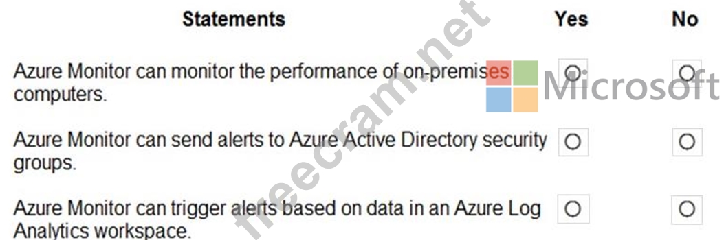 For each of the following statements, select Yes if the statement is true. Otherwise, select No.
