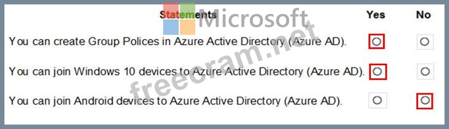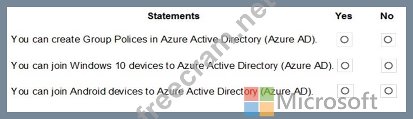 For each of the following statements, select Yes if the statement is true. Otherwise, select No.