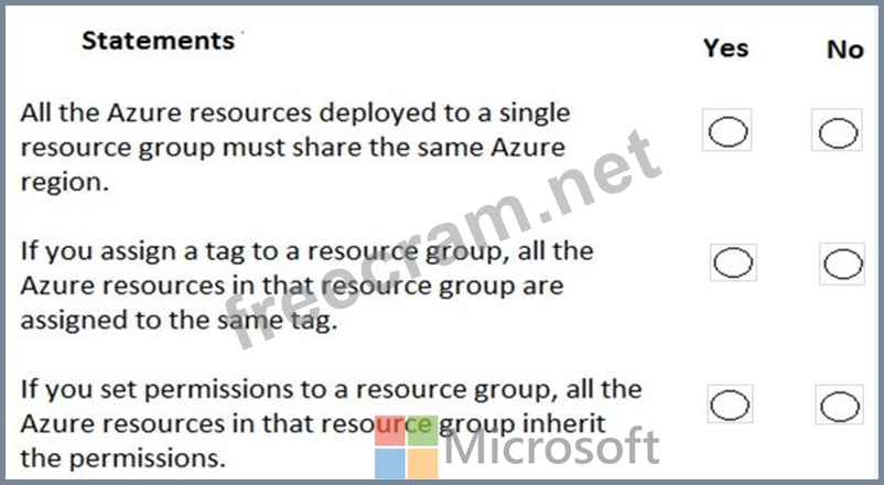 For each of the following statements, select Yes if the statement is true. Otherwise, select No.