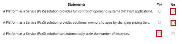 For each of the following statements, select Yes if the statement is true. Otherwise, select No.