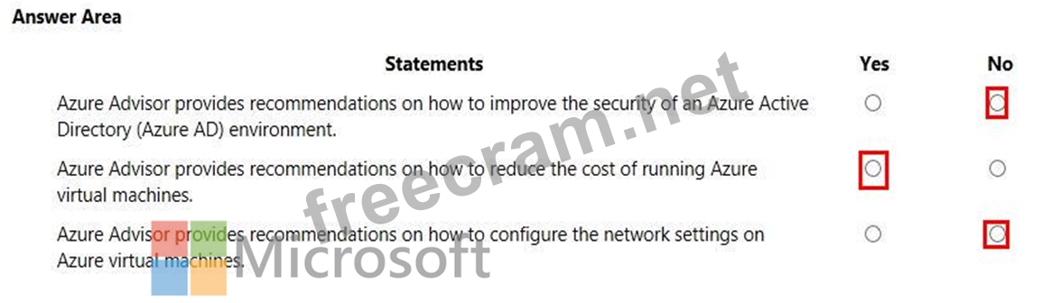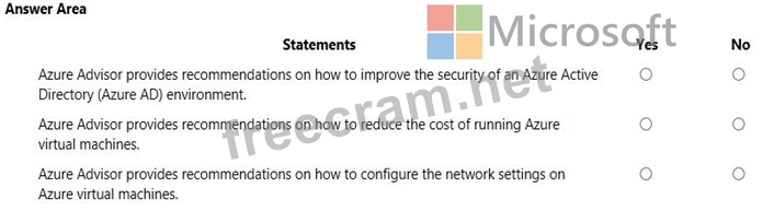 For each of the following statements, select Yes if the statement is true. Otherwise, select No. NOTE: Each correct selection is worth one point.