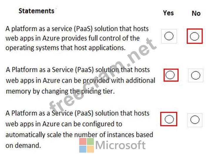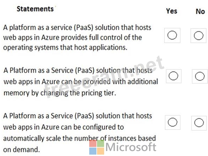 For each of the following statements, select Yes if the statement is true. Otherwise, select No.