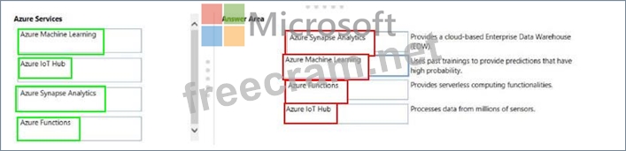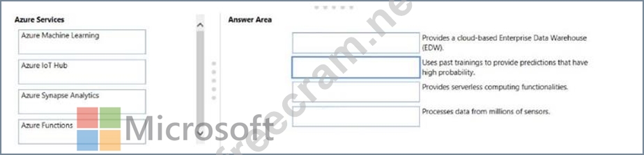 Instructions: To answer, drag the appropriate Azure service from the column on the left to its description on the right. Each service may be used once, more than once, or not at all.