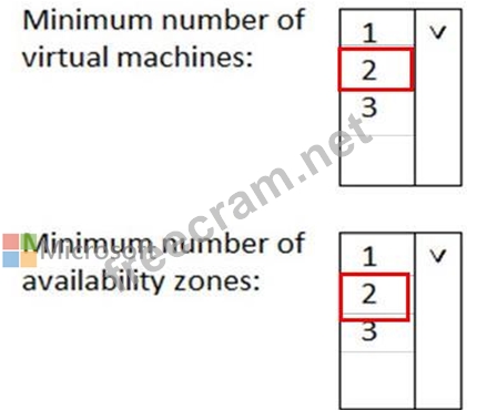 What is the minimum number of virtual machines and the minimum number of availability zones you should recommend for the deployment? To answer, select the appropriate options in the answer area.