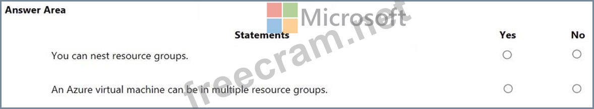 For each of the following statements, select Yes if the statement is true. Otherwise, select No.