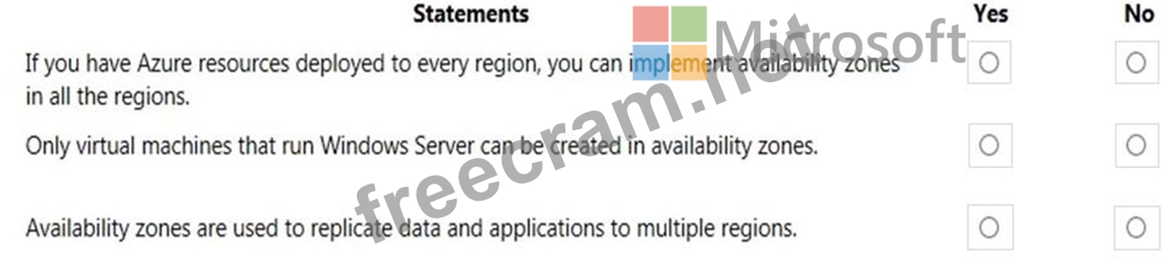 For each of the following statements, select Yes if the statement is true. Otherwise, select No.