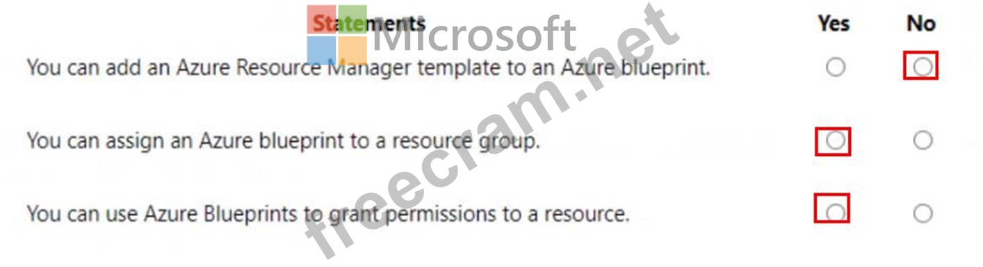 For each of the following statements, select Yes if the statement is true. Otherwise, select No.