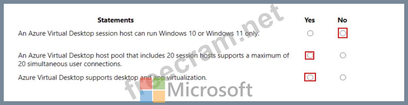 For each of the following statements, select Yes if the statement is true. Otherwise, select No.