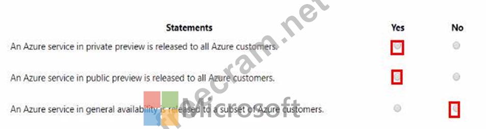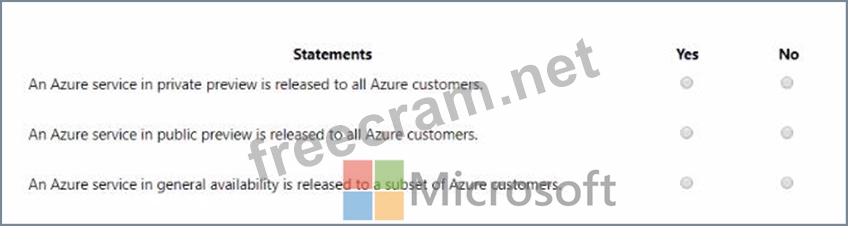 For each of the following statements, select Yes if the statement is true. Otherwise, select No.