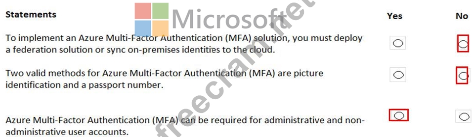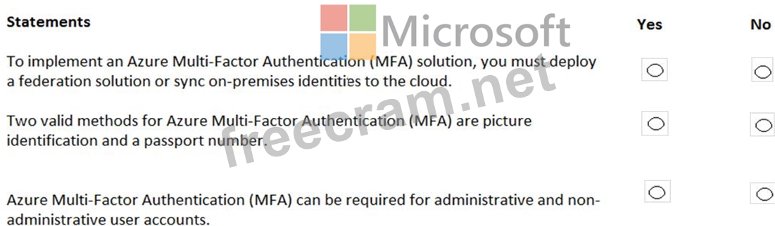 For each of the following statements, select Yes if the statement is true. Otherwise, select No.