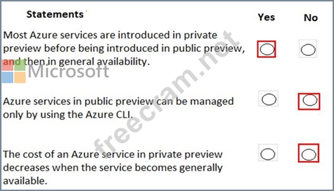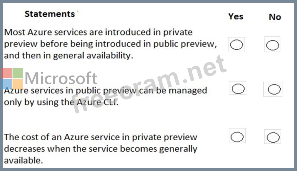 For each of the following statements, select Yes if the statement is true. Otherwise, select No.