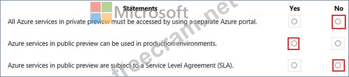 For each of the following statements, select Yes if the statement is true. Otherwise, select No.