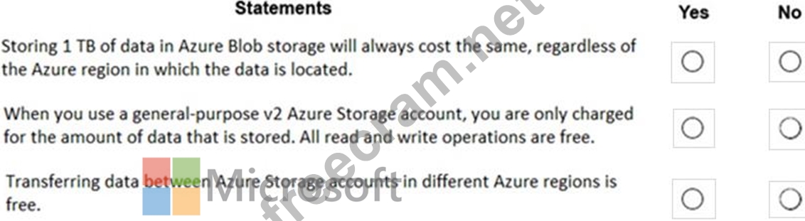 For each of the following statements, select Yes if the statement is true. Otherwise, select No.