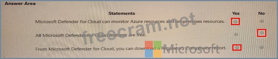 For each of the following statements, select Yes if the statement is true. Otherwise, select No. NOTE: Each correct selection is worth one point.