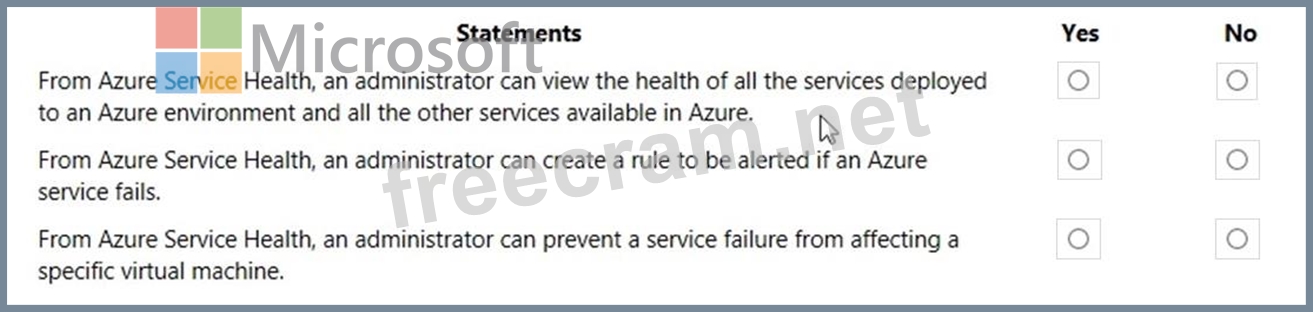 For each of the following statements, select Yes if the statement is true. Otherwise, select No.