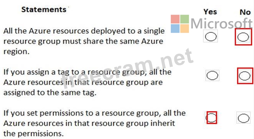 For each of the following statements, select Yes if the statement is true. Otherwise, select No.