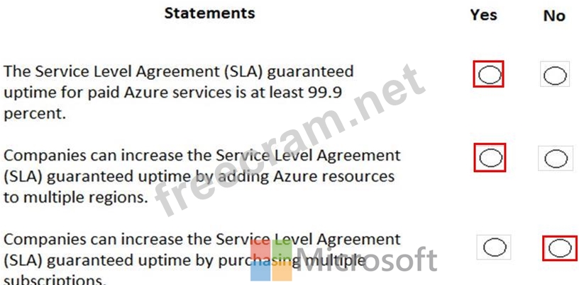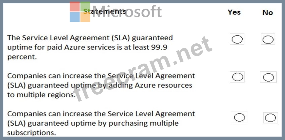 For each of the following statements, select Yes if the statement is true. Otherwise, select No.