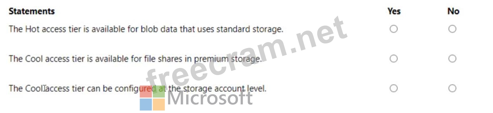 Question 202: For each of the following statements, select Yes If the stat...