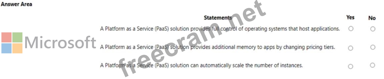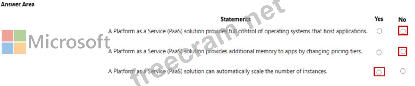 For each of the following statements, select Yes if the statement is true. Otherwise, select No. NOTE: Each correct selection is worth one point.