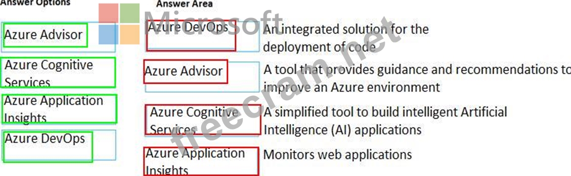 Instructions: To answer, drag the appropriate Azure service from the column on the left to its description on the right. Each service may be used once, more than once, or not at all.