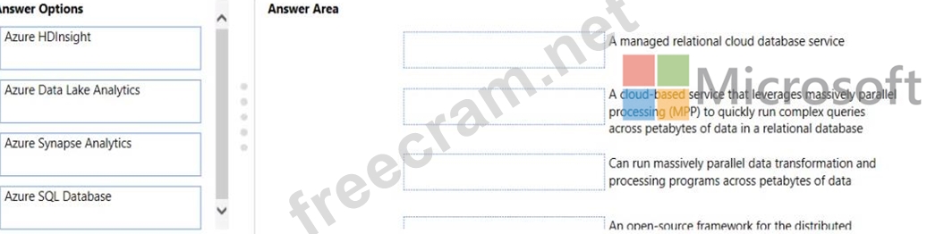 Instructions: To answer, drag the appropriate Azure service from the column on the left to its description on the right. Each service may be used once, more than once, or not at all NOTE: Each correct match is worth one point.