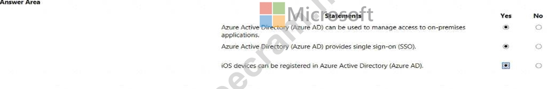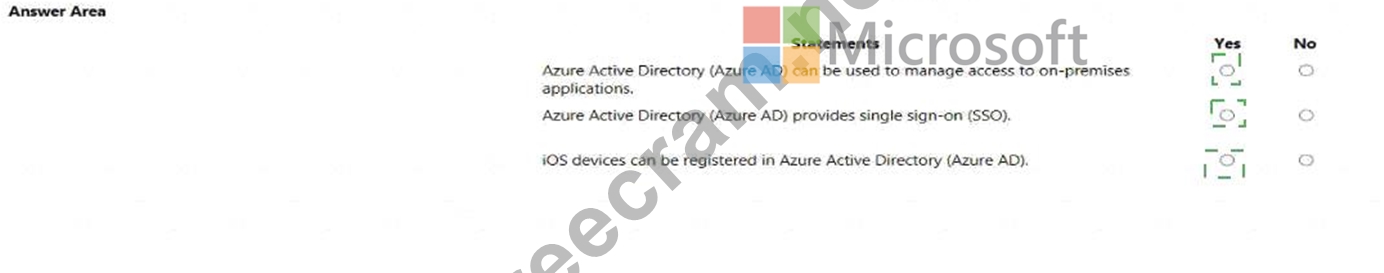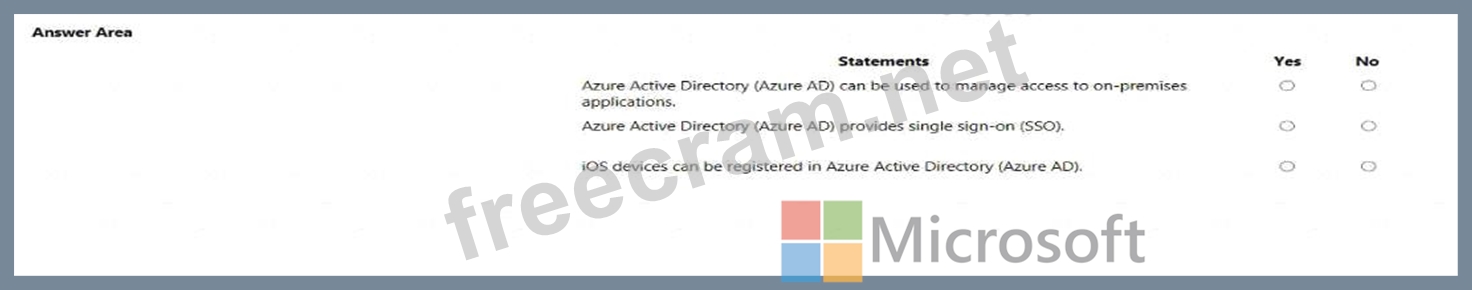 For each of the following statements, select Yes If the statement is tine. Otherwise, select No. NOTE: Each collect selection is worth one point.