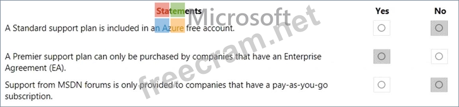 For each of the following statements, select Yes if the statement is true. Otherwise, select No. NOTE: Each correct selection is worth one point.