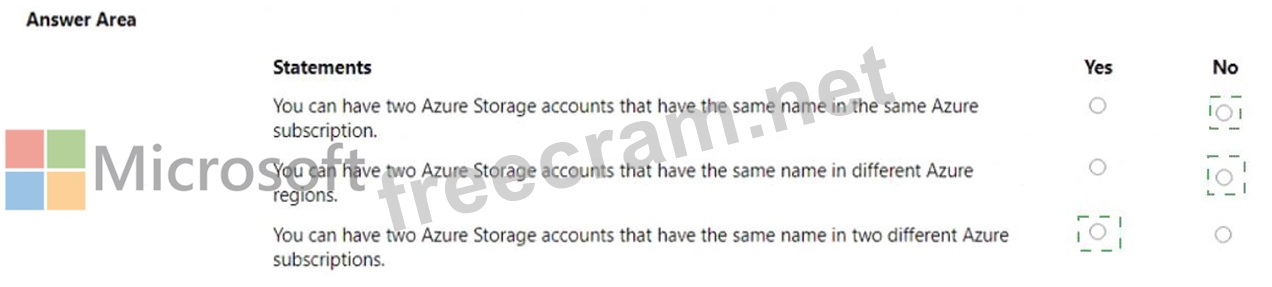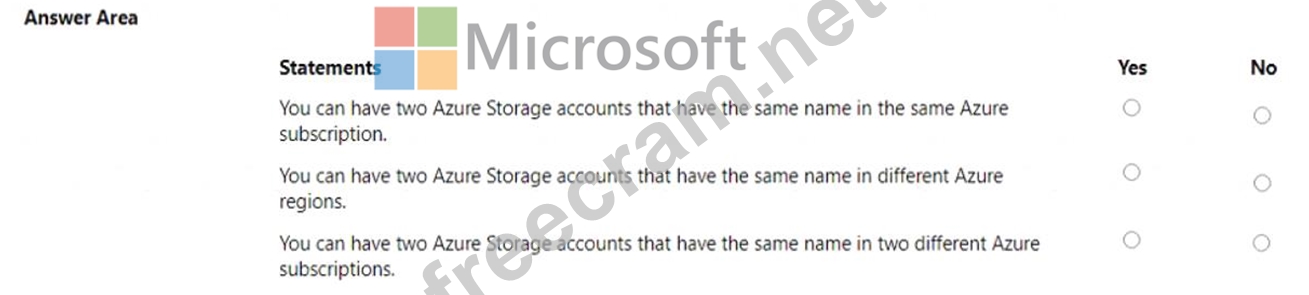 For each of the following statements, select Yes if the statement is true. Otherwise, select No.