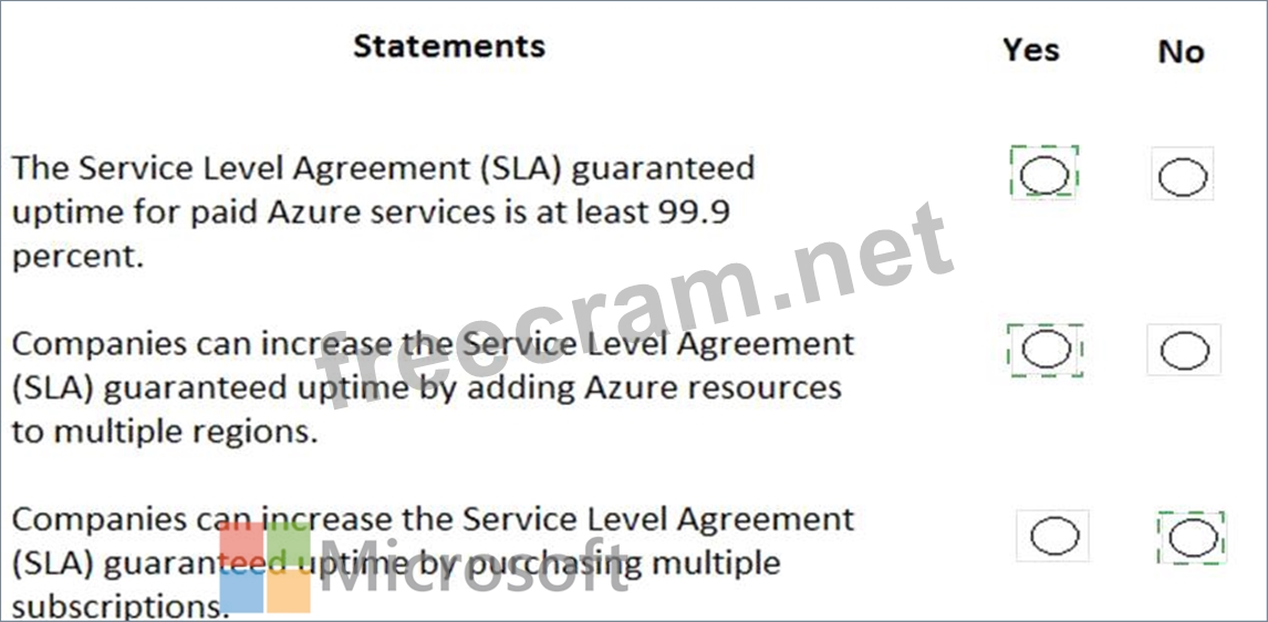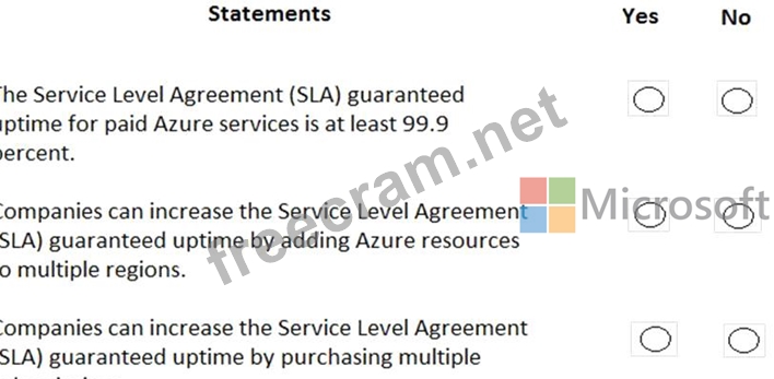 For each of the following statements, select Yes if the statement is true. Otherwise, select No.