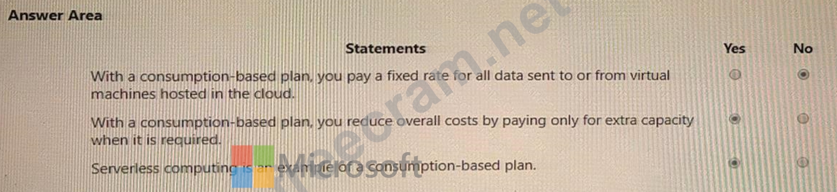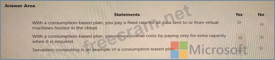 For each of the following statements, select Yes if the statement is true. Otherwise, select No. NOTE: Each correct selection is worth one point.
