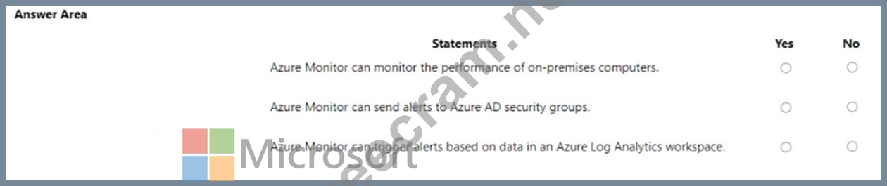 For each of the following statements, select Yes if the statement is true. Otherwise, select No. NOTE: Each correct selection is worth one point.