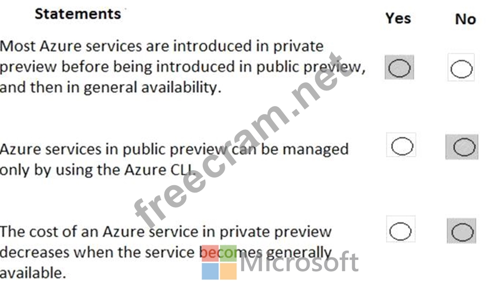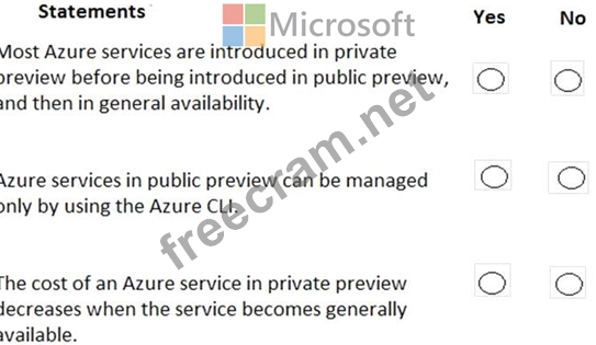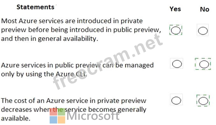 For each of the following statements, select Yes if the statement is true. Otherwise, select No.